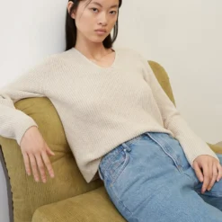 Marc O’Polo Knitted V-neck Jumper, Relaxed Made Of Organic Cotton