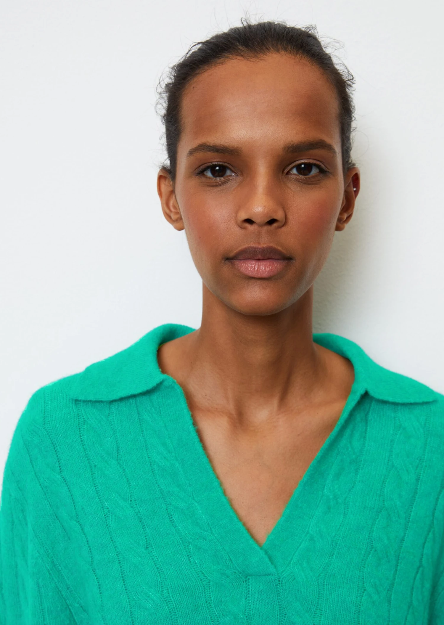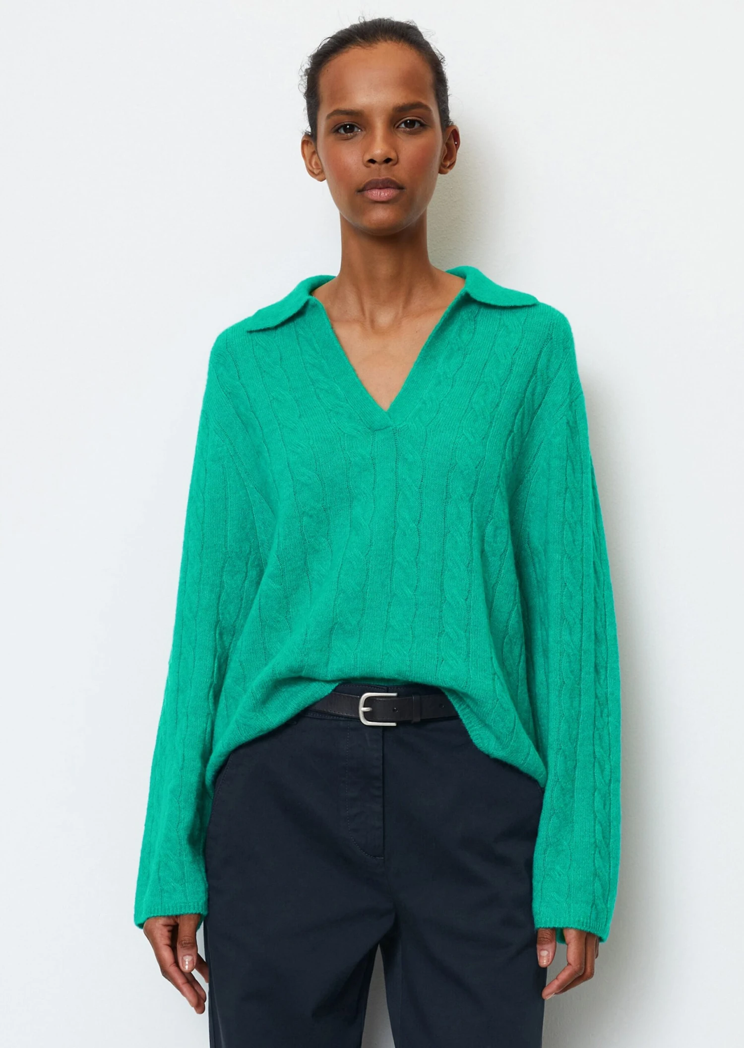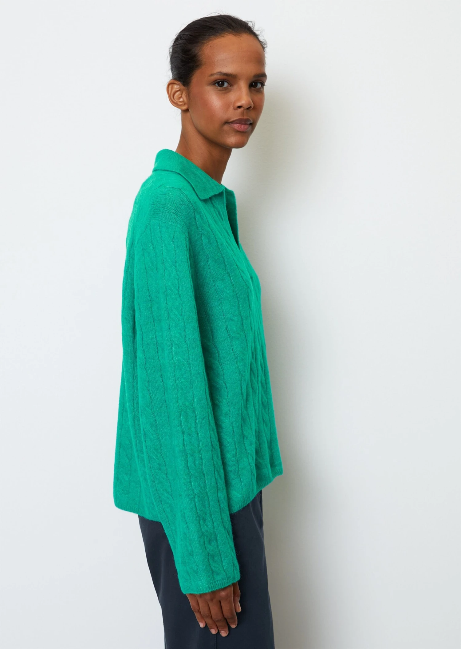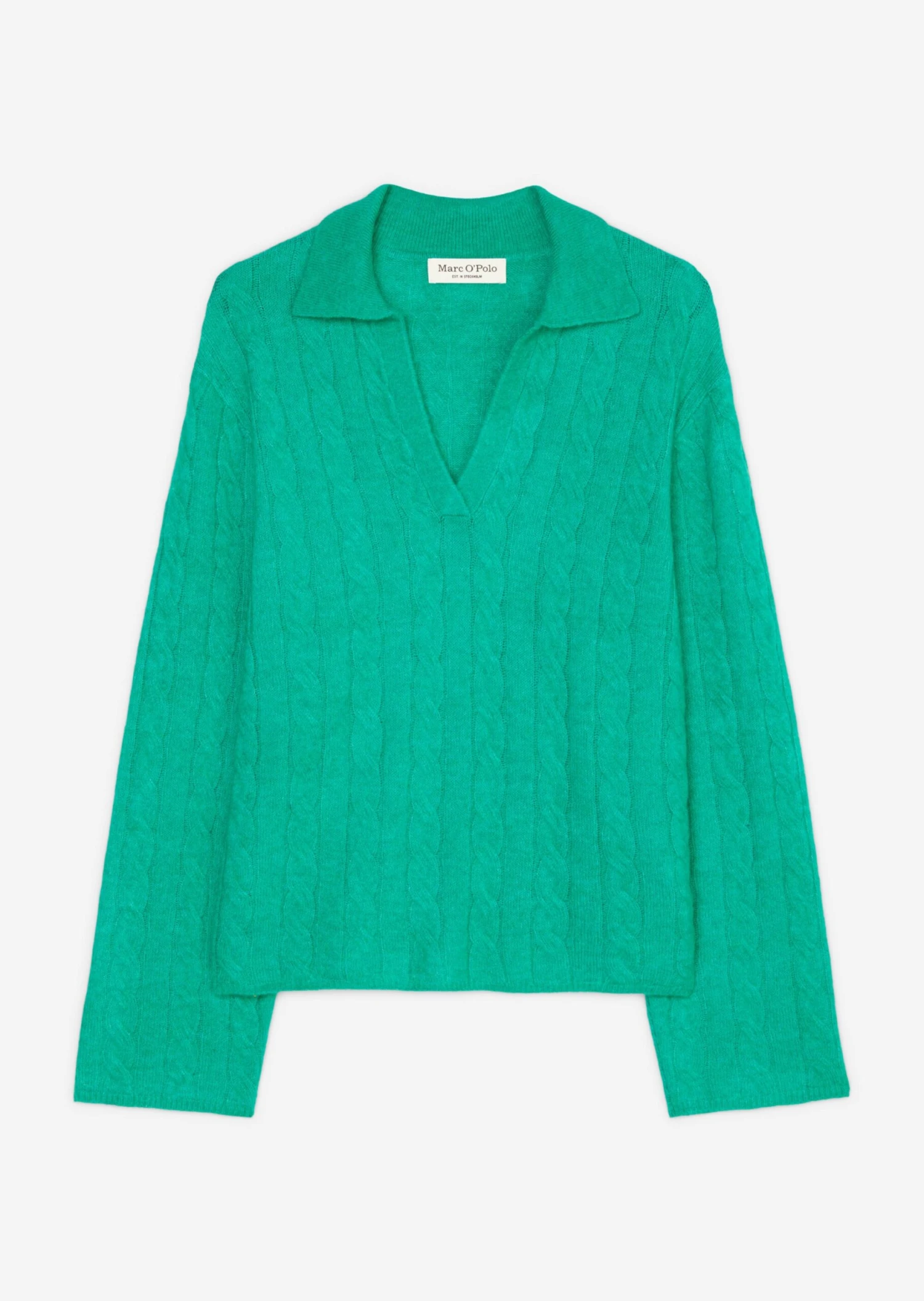 Marc O’Polo Cable Knit Jumper With Polo Collar Loose Contains Cosy Alpaca Wool