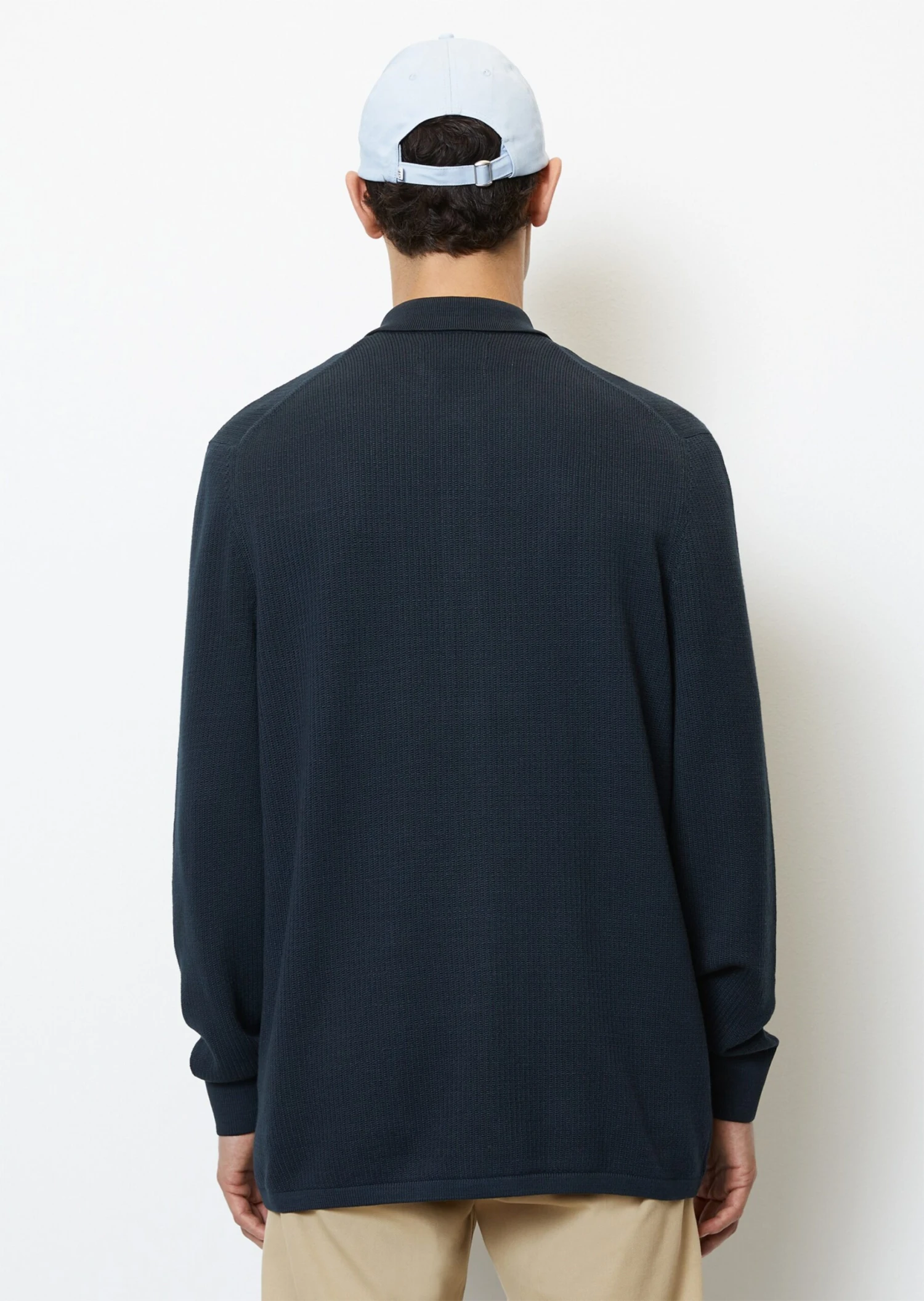Smart & casual at the same time: the high-quality cardigan with a flat knit collar offers many styling options. Made of pure, GOTS-certified organic cotton, it comes in a masculine regular fit. With French shoulder processing, full-length button placket with practical press studs and side patch pockets. Timeless and universally applicable.