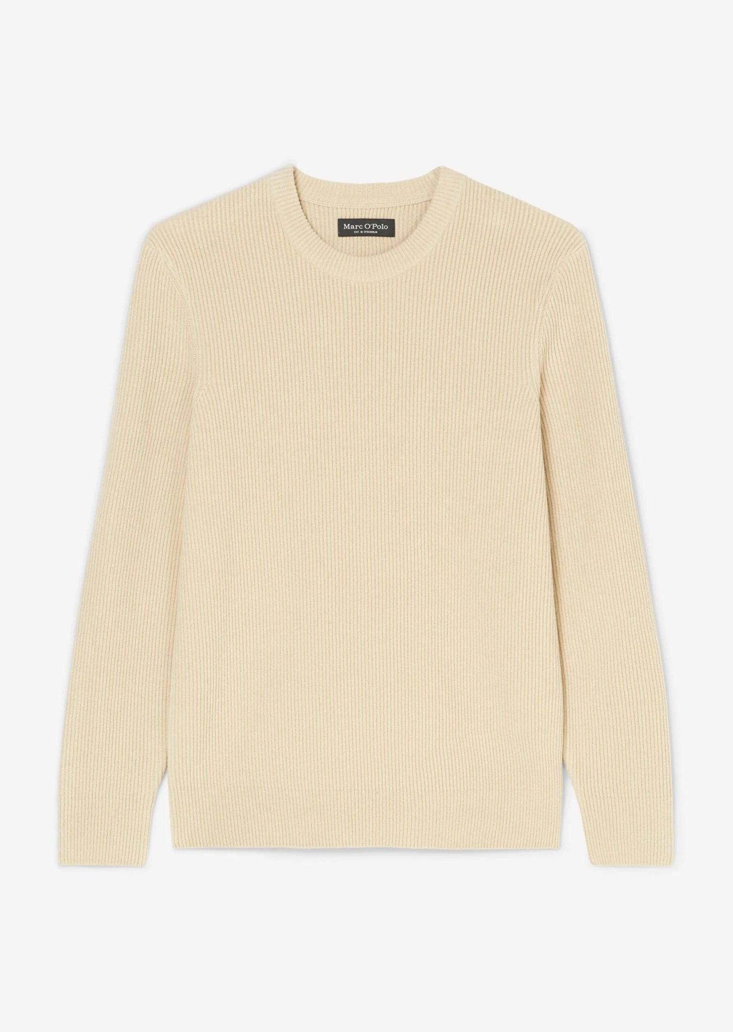 Marc O’Polo Crewneck Jumper With Openwork Pattern, Cropped Made From Pure New Wool