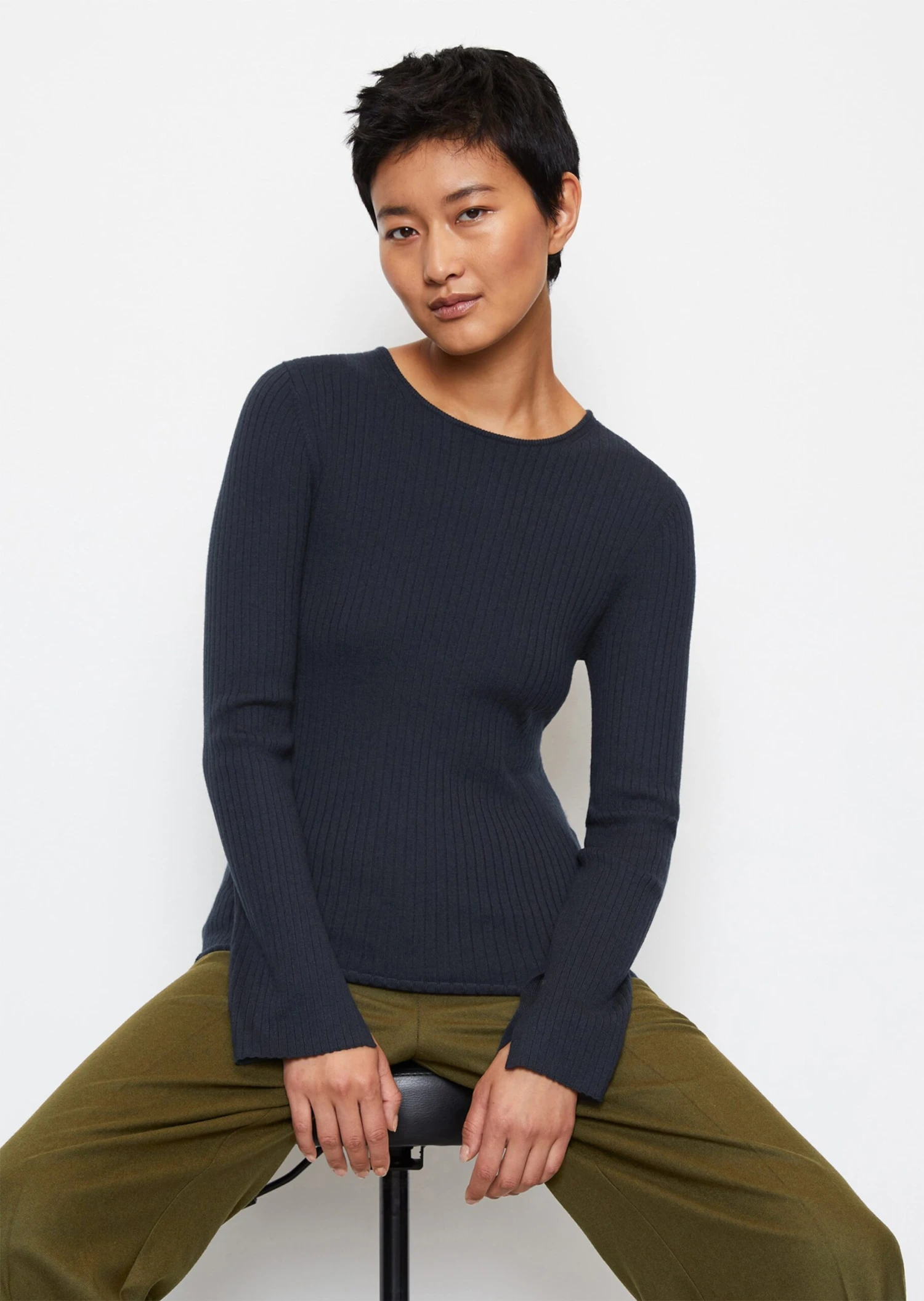 Chic, elegant and all-rounder level: the finely knitted sweater in super-soft virgin wool-viscose-cashmere wool mix. Model in classic slim fit with round neckline and ribbed cuffs and hem. Special detail: the slit sleeve hem and the fully fashioned finish at the armhole. Styling tip: combine with the matching cardigan for a casual twinset look.