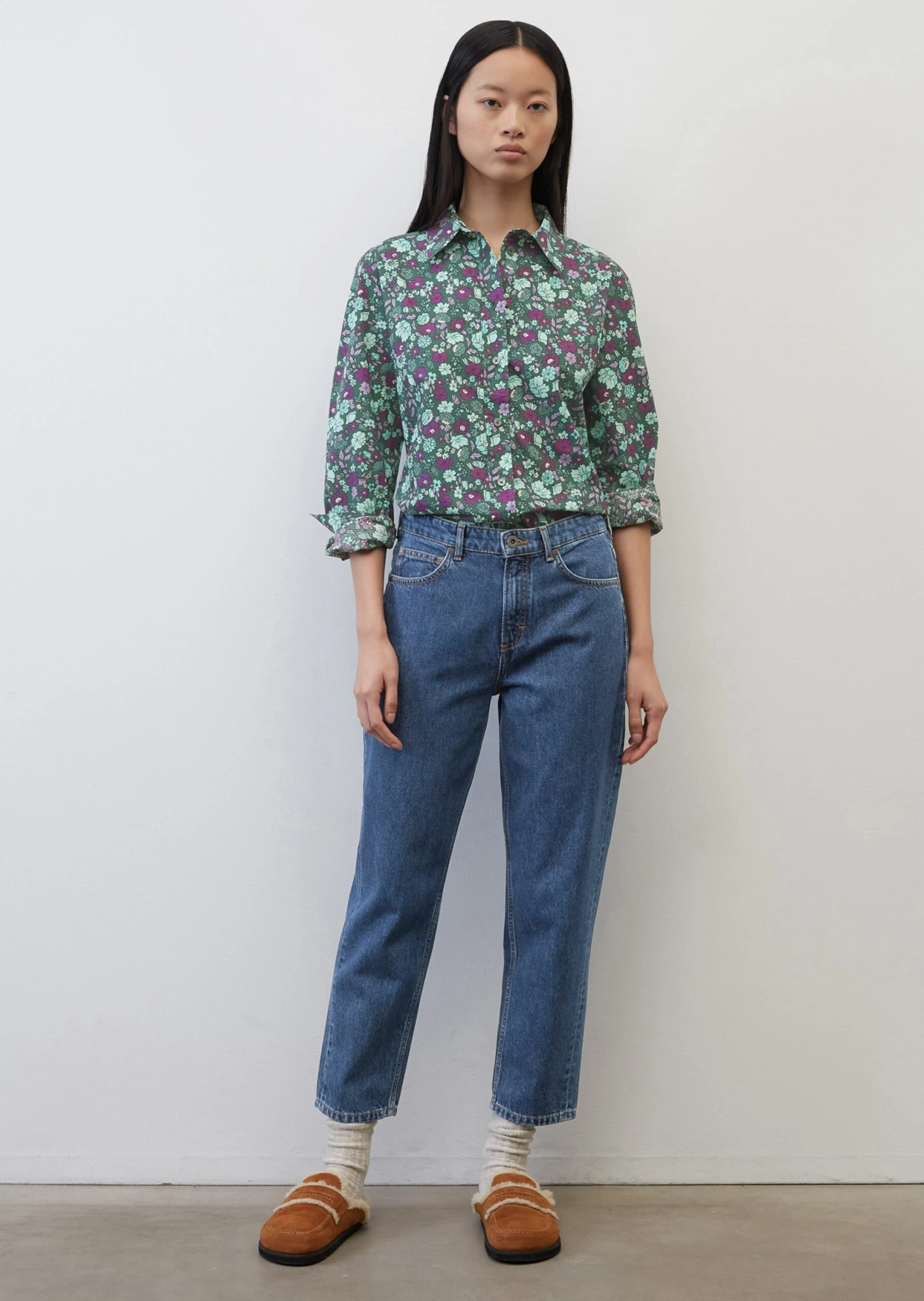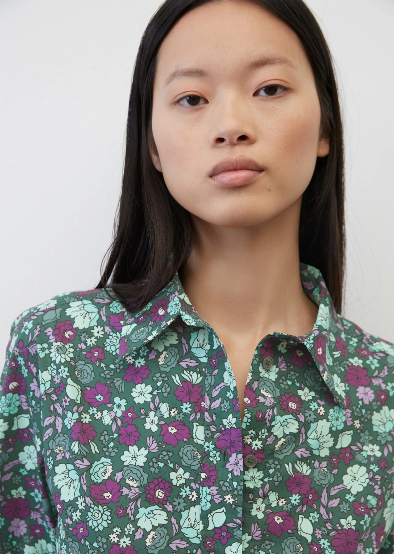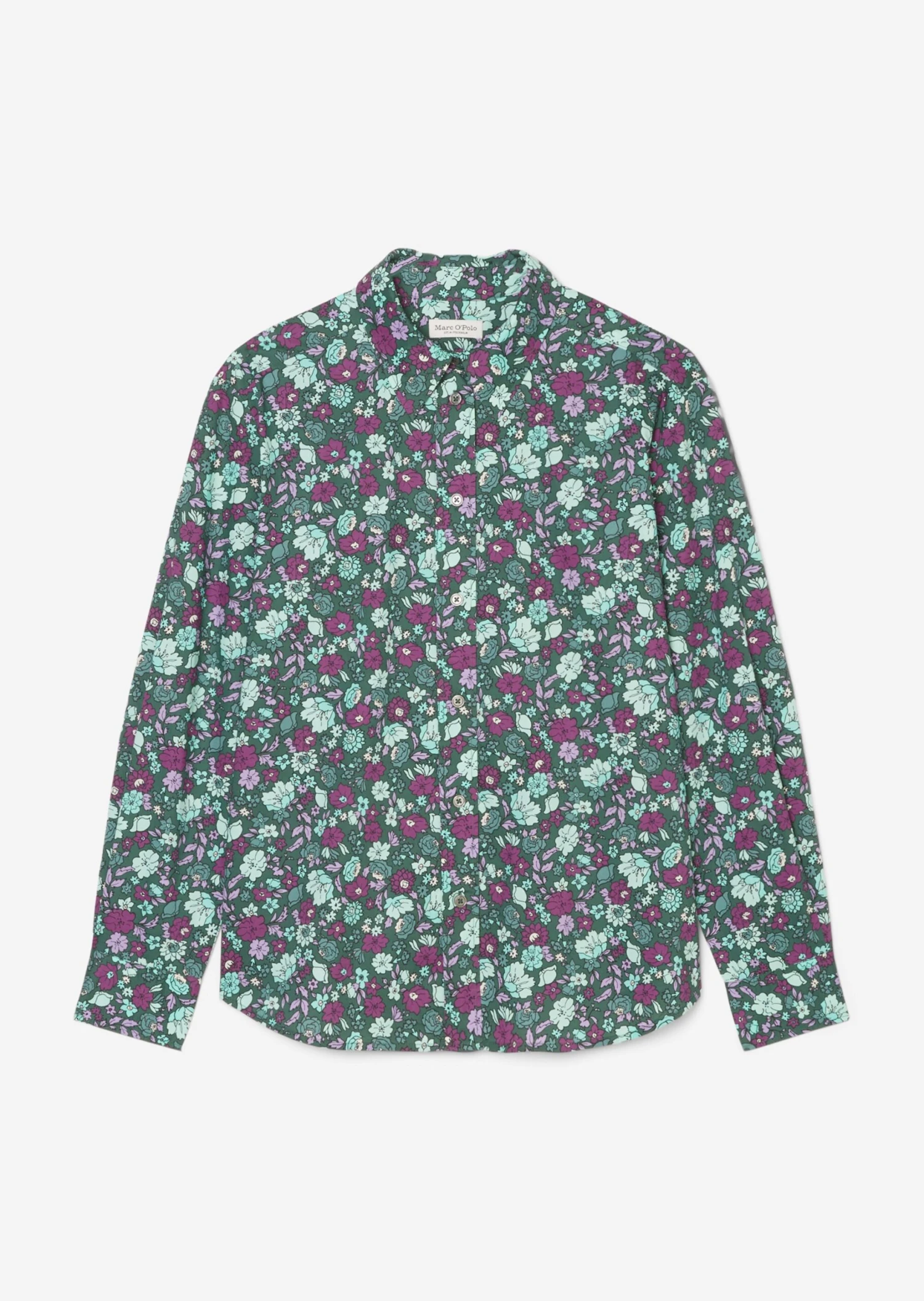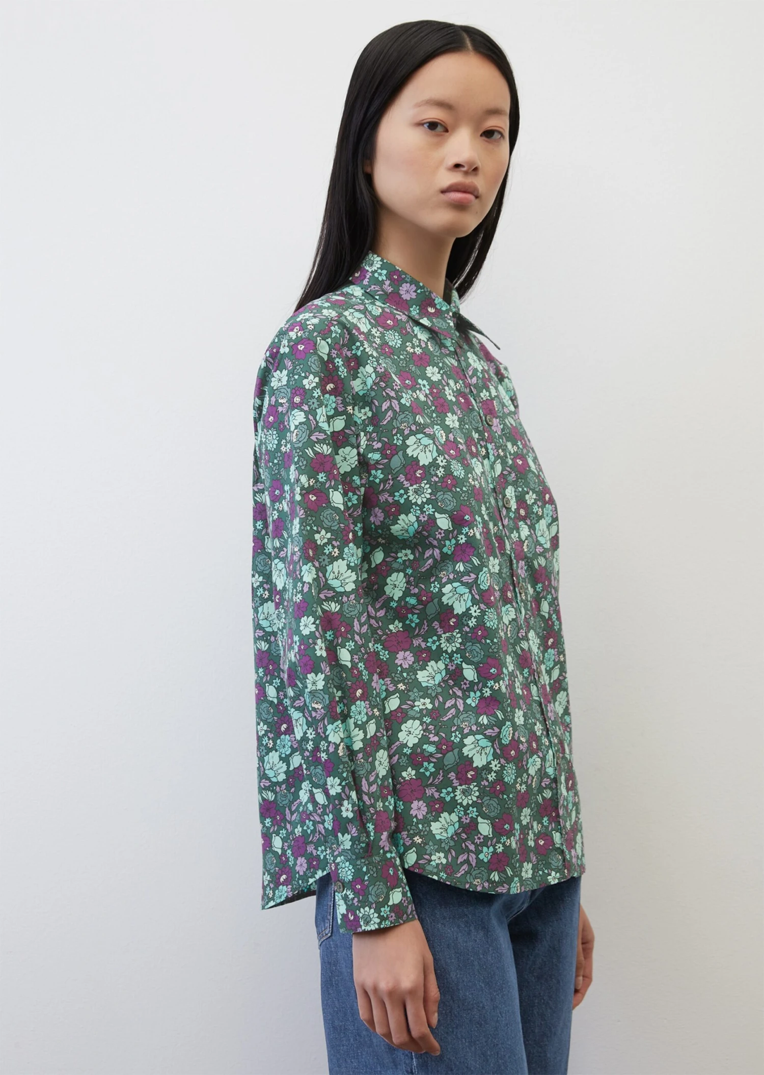 Marc O’Polo Flared Blouse With Allover Print Made Of Paper Touch Poplin