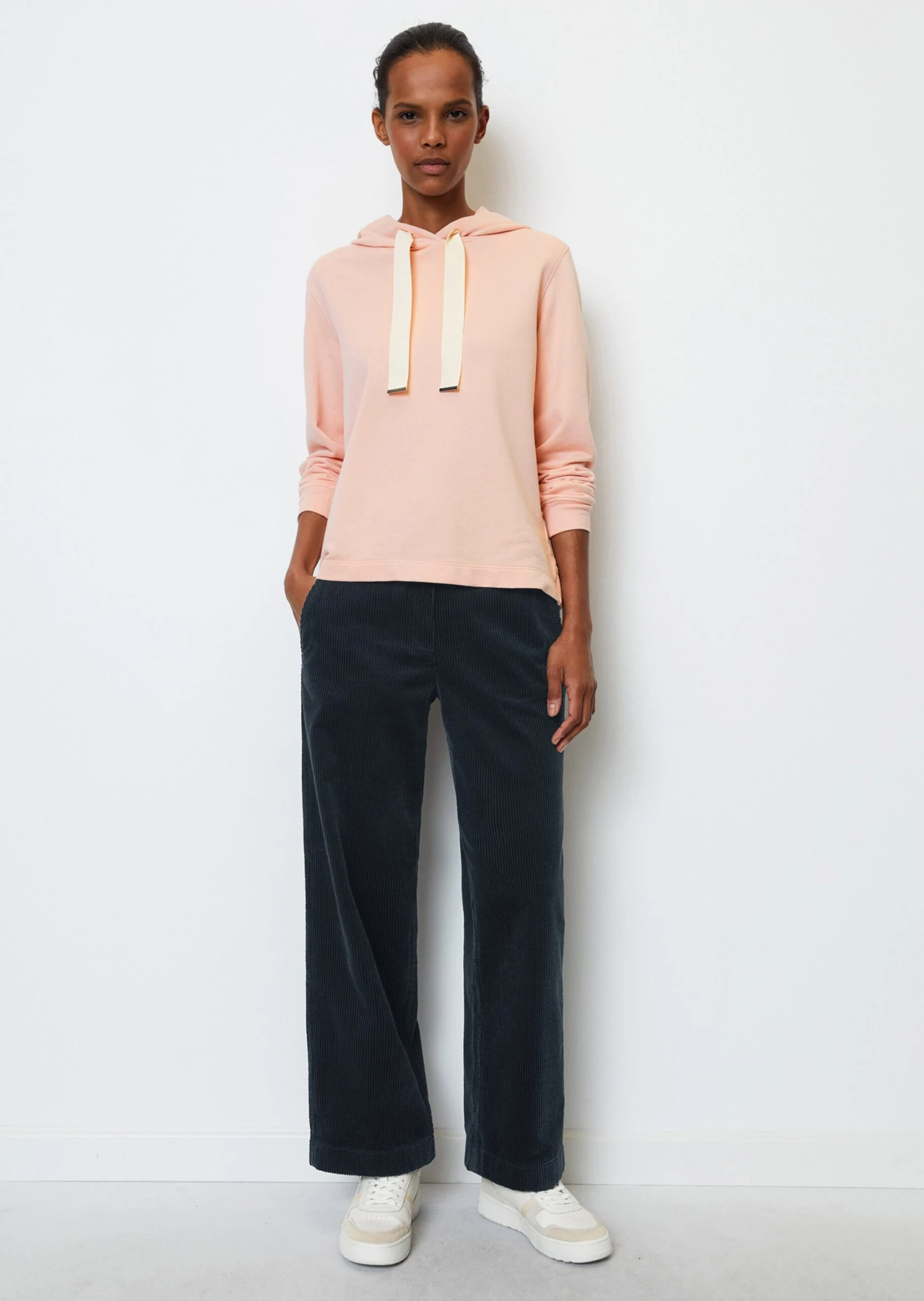 The hooded sweatshirt exudes a touch of the 80s, casual retro flair and is an absolute must-have. It turns every outfit into an eye-catcher and is a modern casual classic. Casual relaxed fit with double-layered hood, long sleeves and ribbed cuffs and back hem. Eye-catching: the wide XL cord band with embossed logo. Styling tip: combine with the matching sweat trousers.