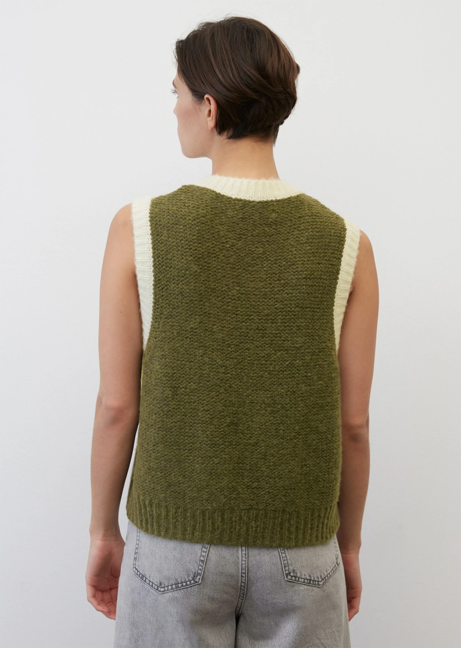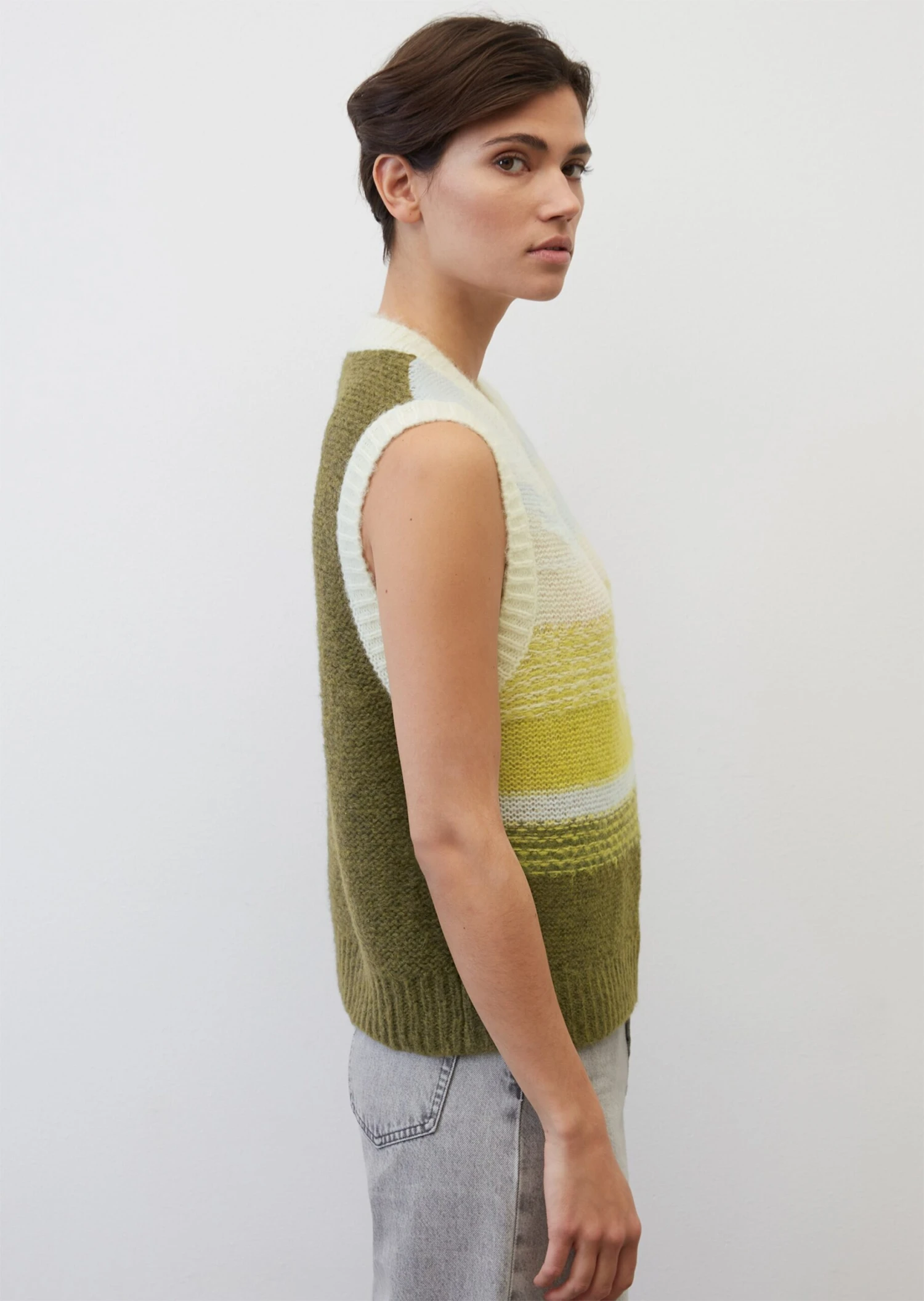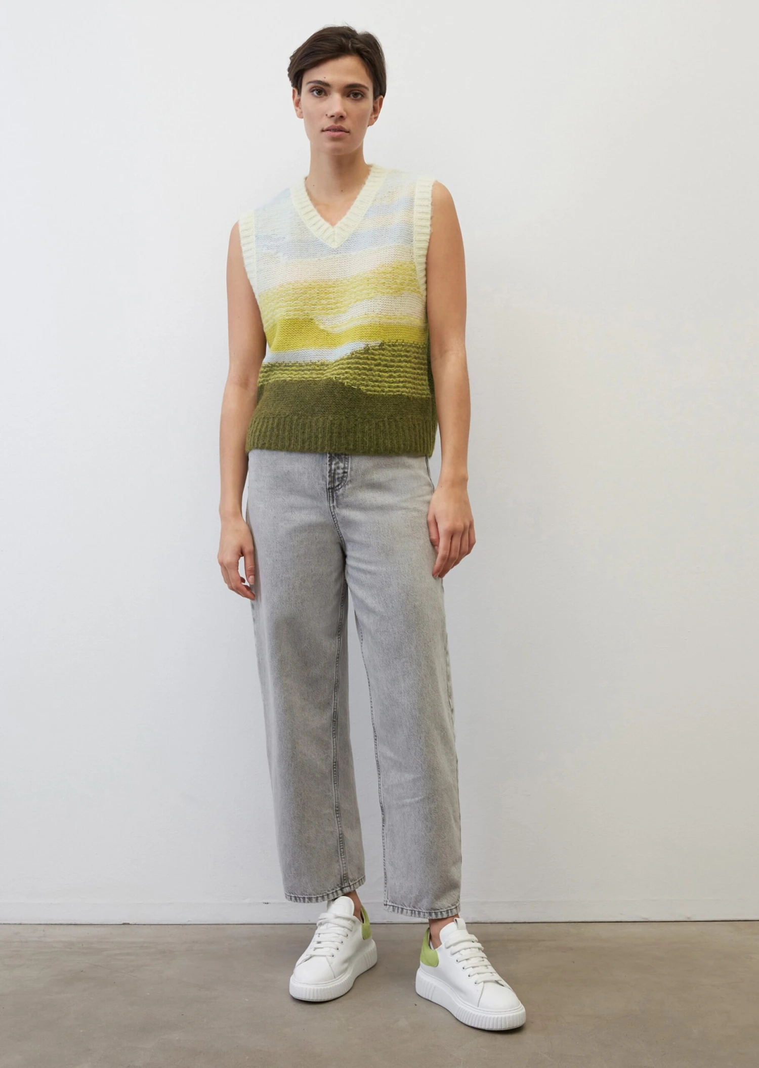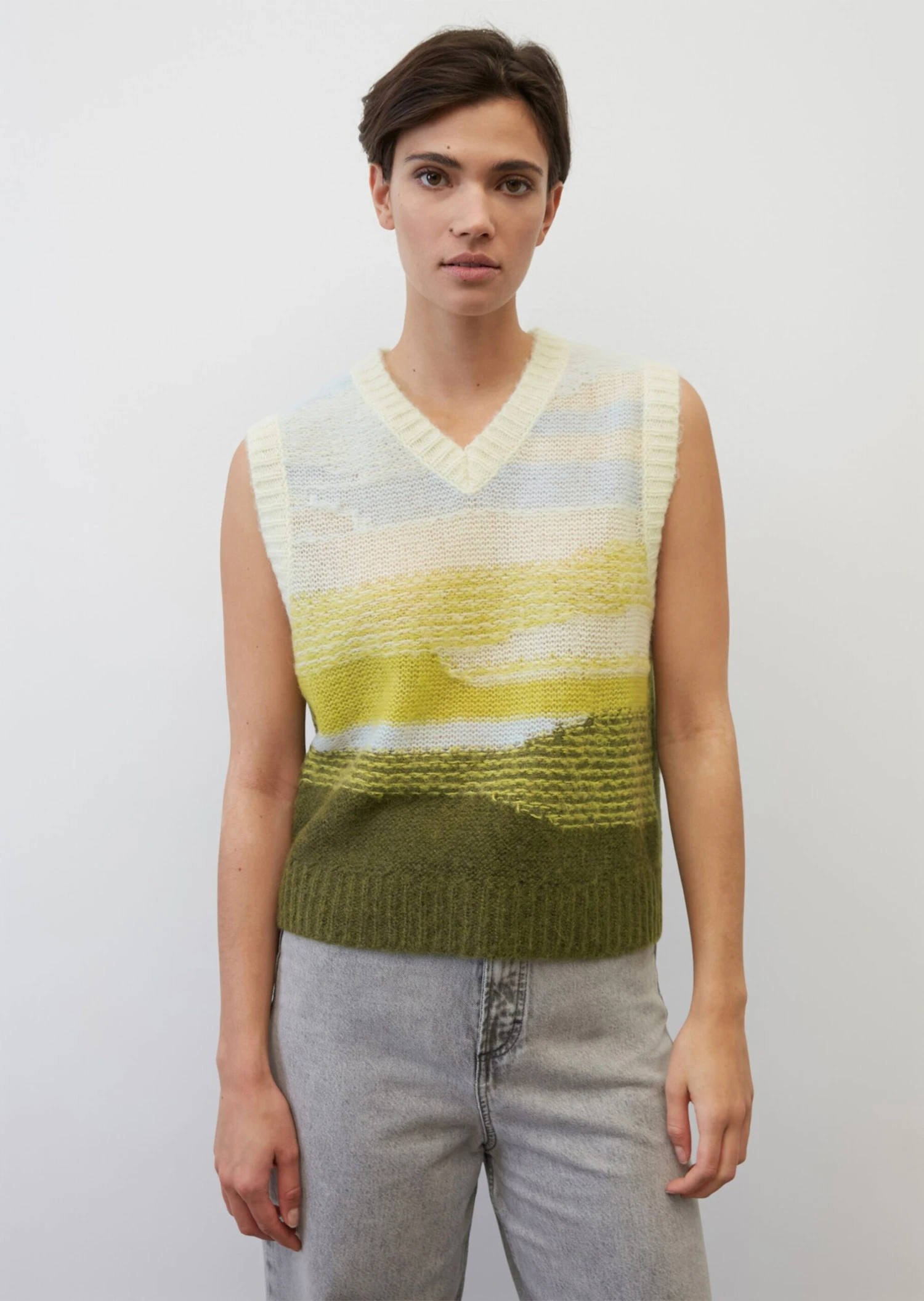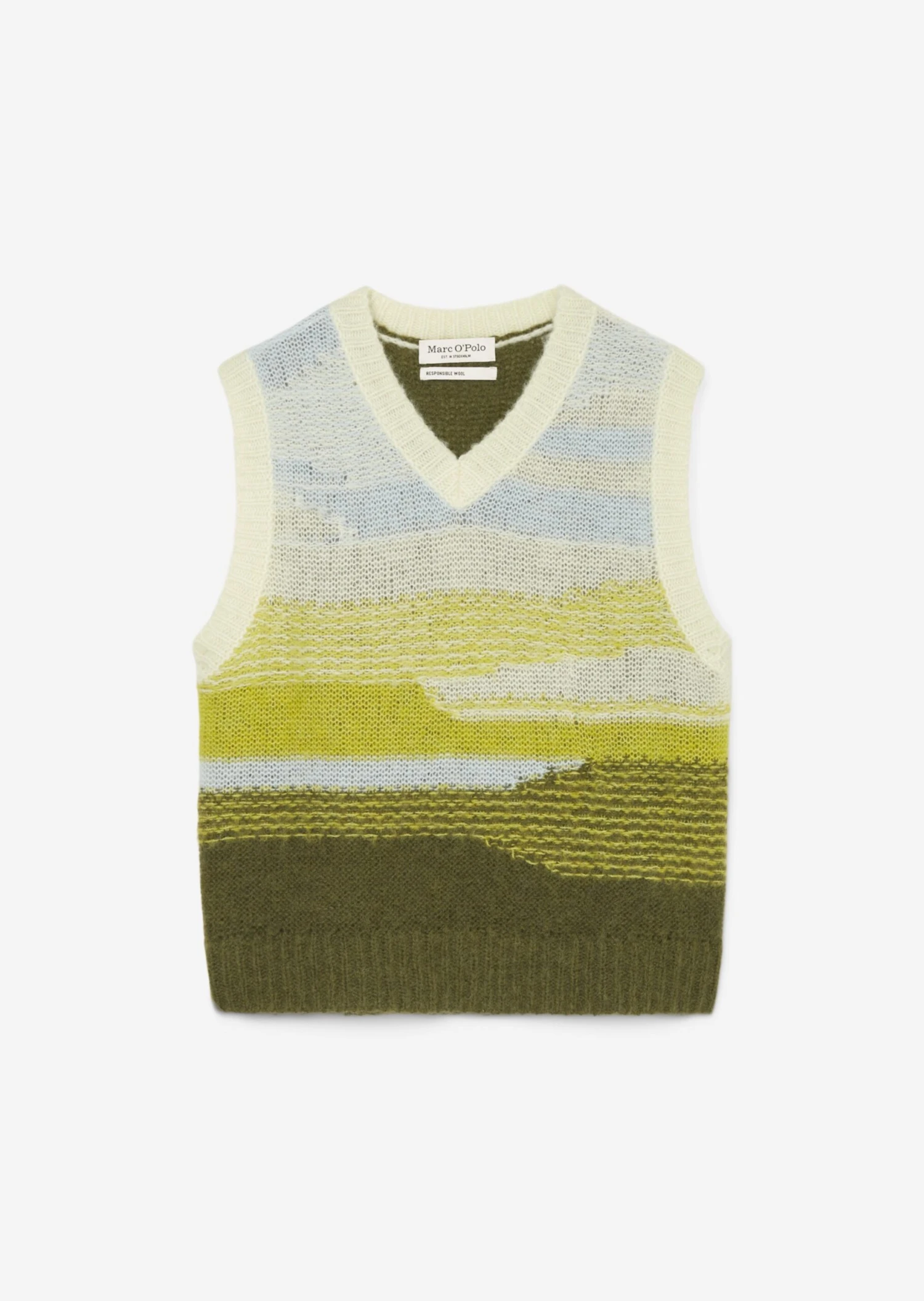 Marc O’Polo Landscape V-neck Sleeveless Jumper In A Soft Blend Of New Wool And Alpaca Wool
