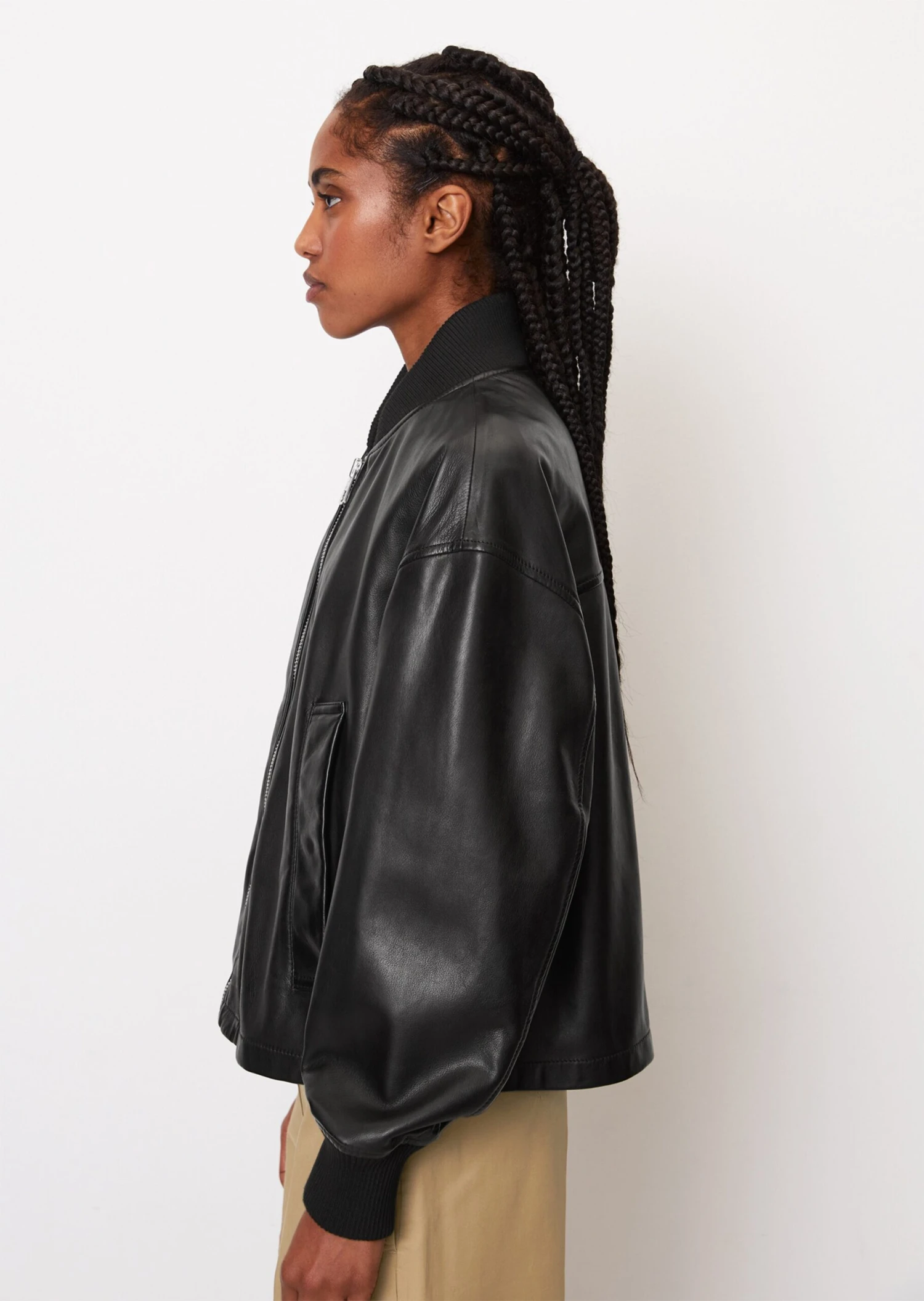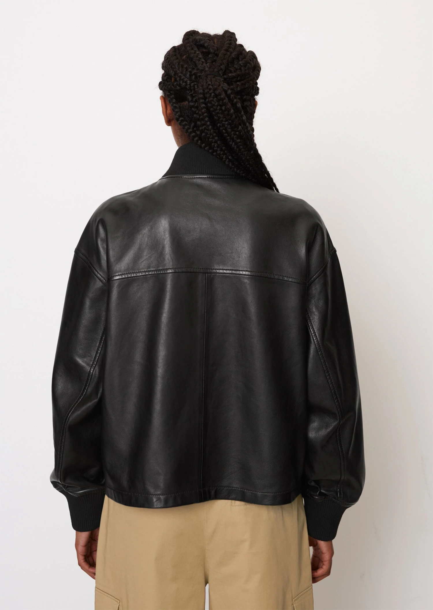 Marc O’Polo Leather Jacket In The Style Of A Cape Made Of Soft Lamb Nappa Leather