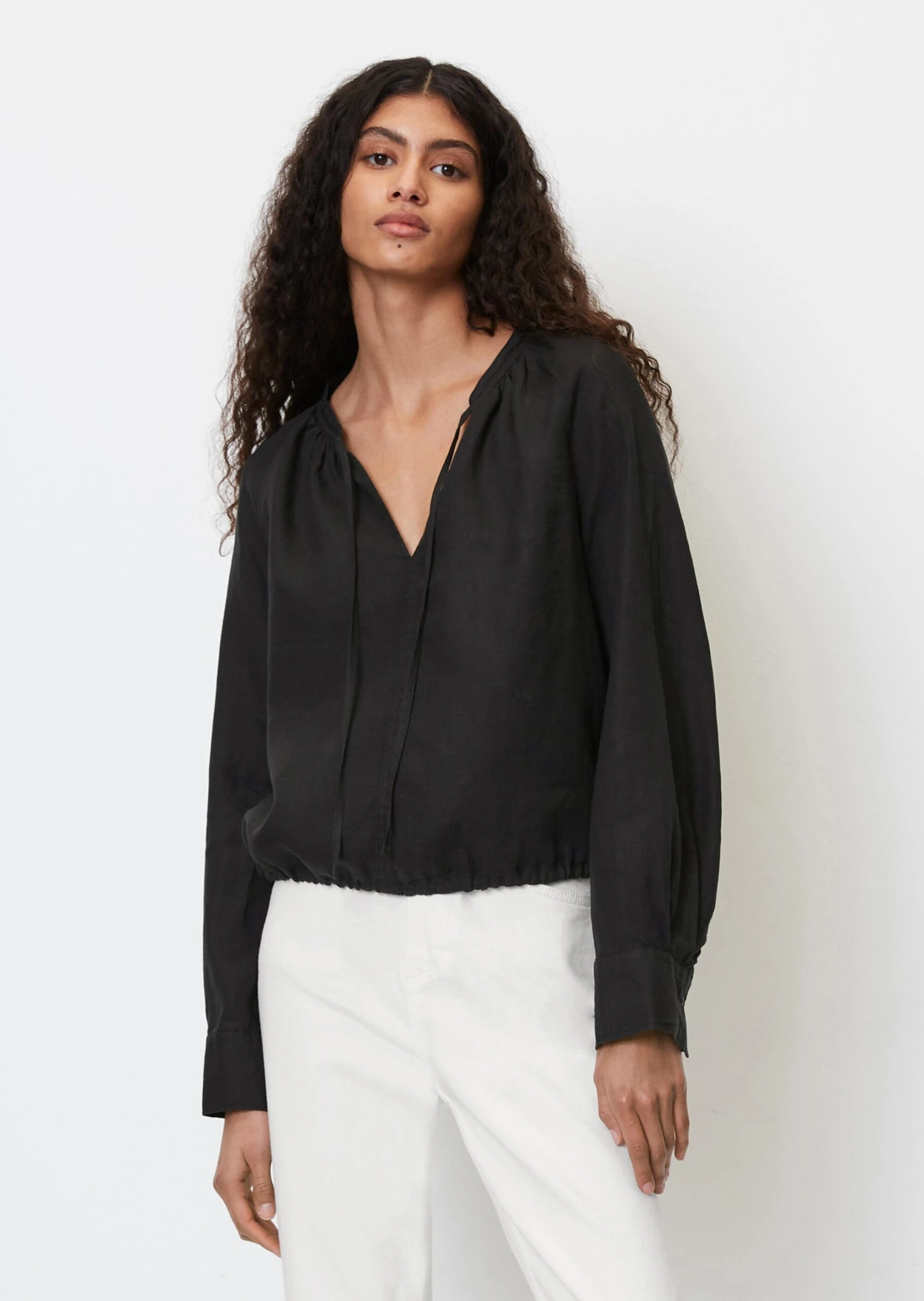 Marc O’Polo Linen Boho Blouse In A Regular Fit With Drawstring At The Hem