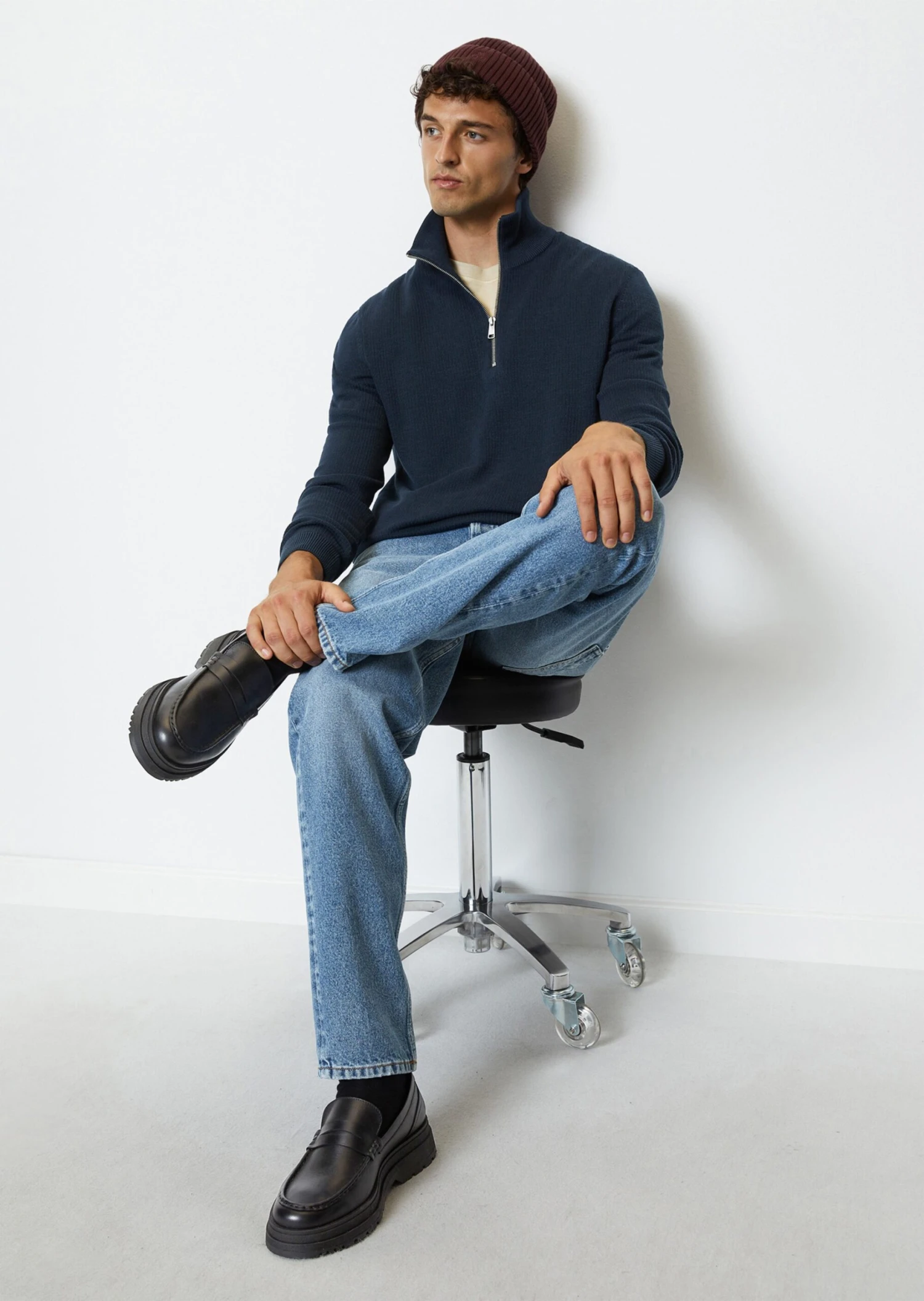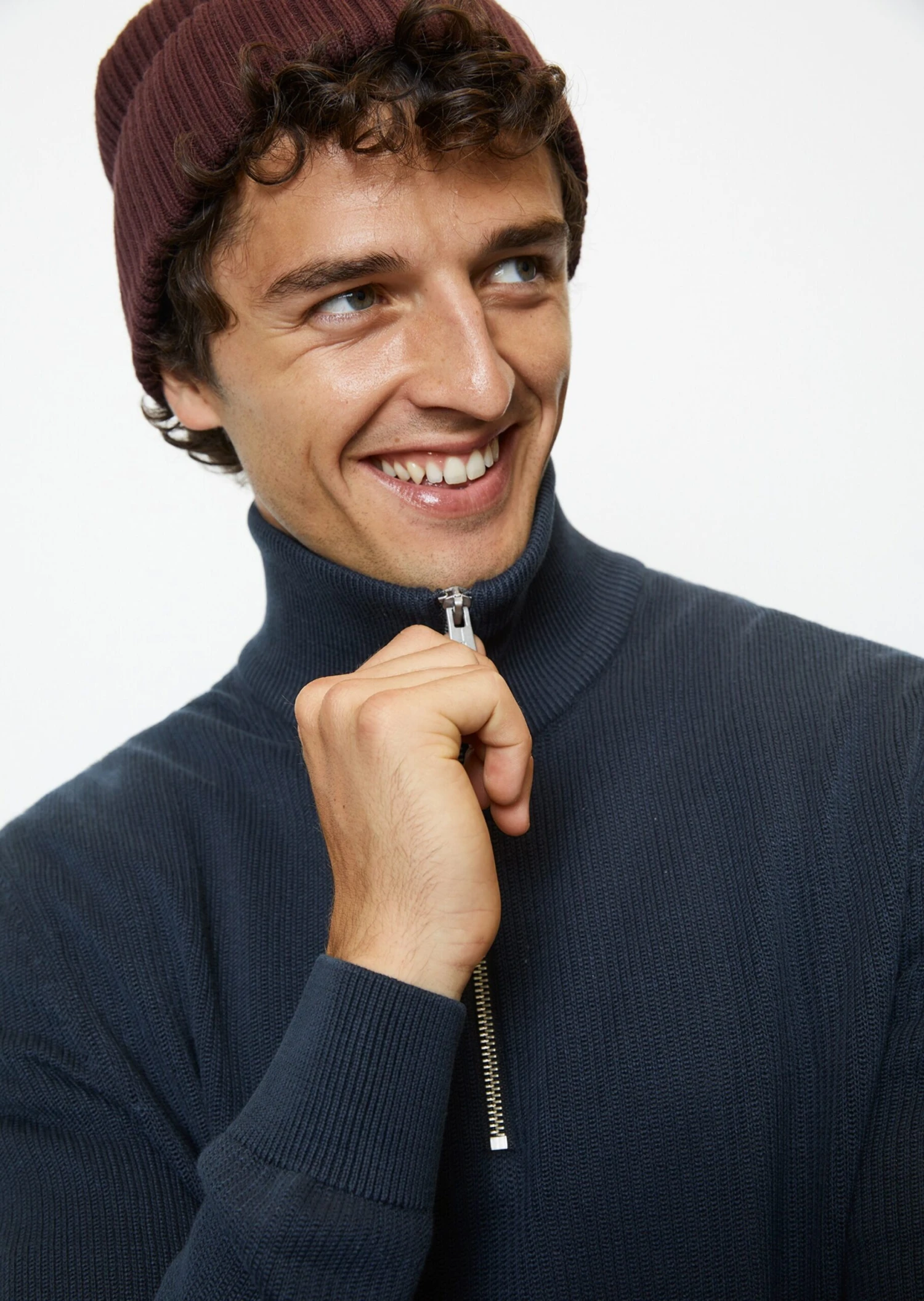 Smart and natural: the high-quality troyer made of pure, GOTS-certified organic cotton in a clean design. In a comfortable regular fit, it features a high, ribbed troyer collar with a pithy zipper for versatile styling options: whether as a stand-up collar, folded over as a turtleneck or with an open zipper. The long sleeves and straight hem finish with classic ribbed cuffs.