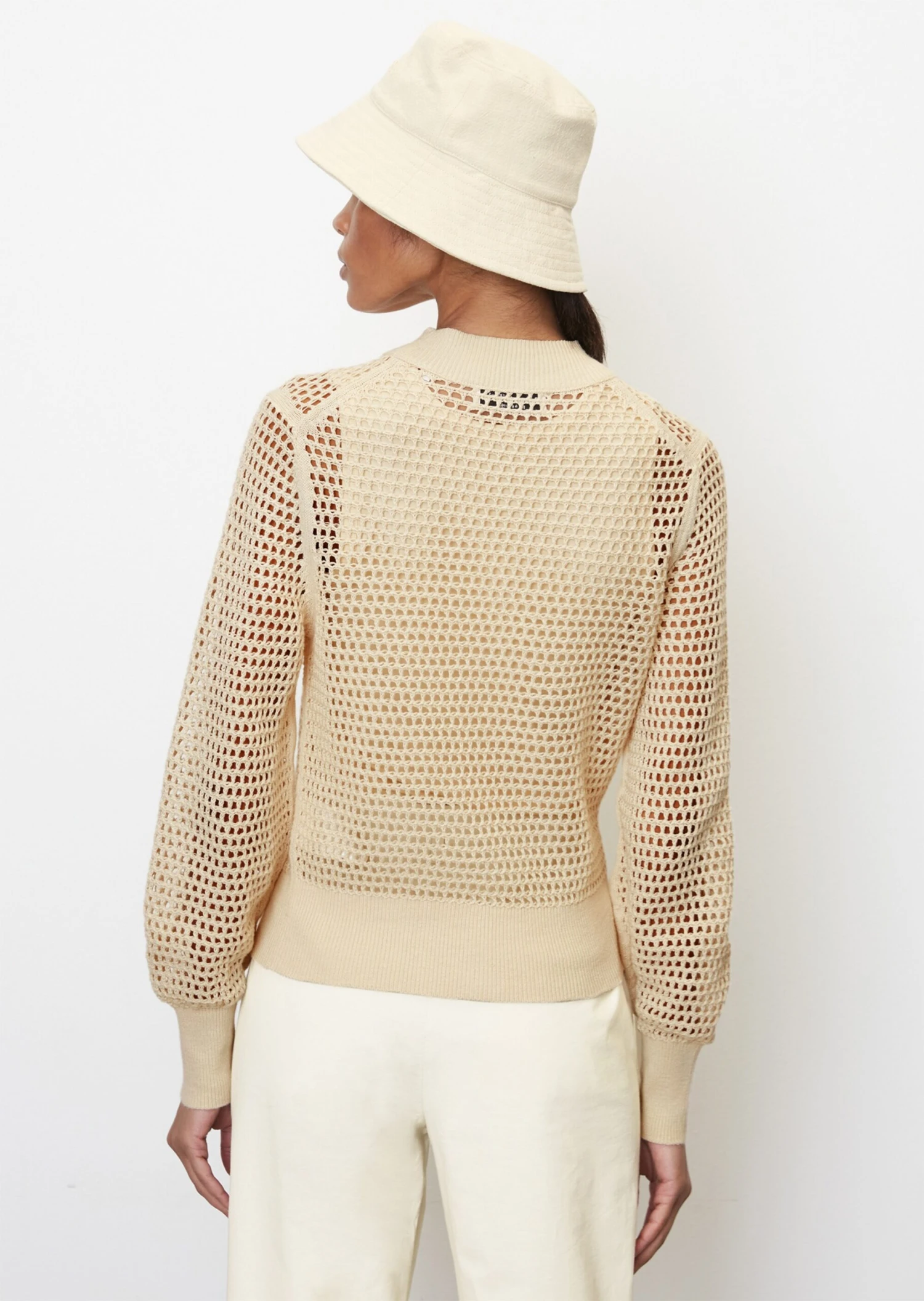 Marc O’Polo Openwork Knit Jumper In A Slim Fit Made Of An Organic Cotton And Linen Blend