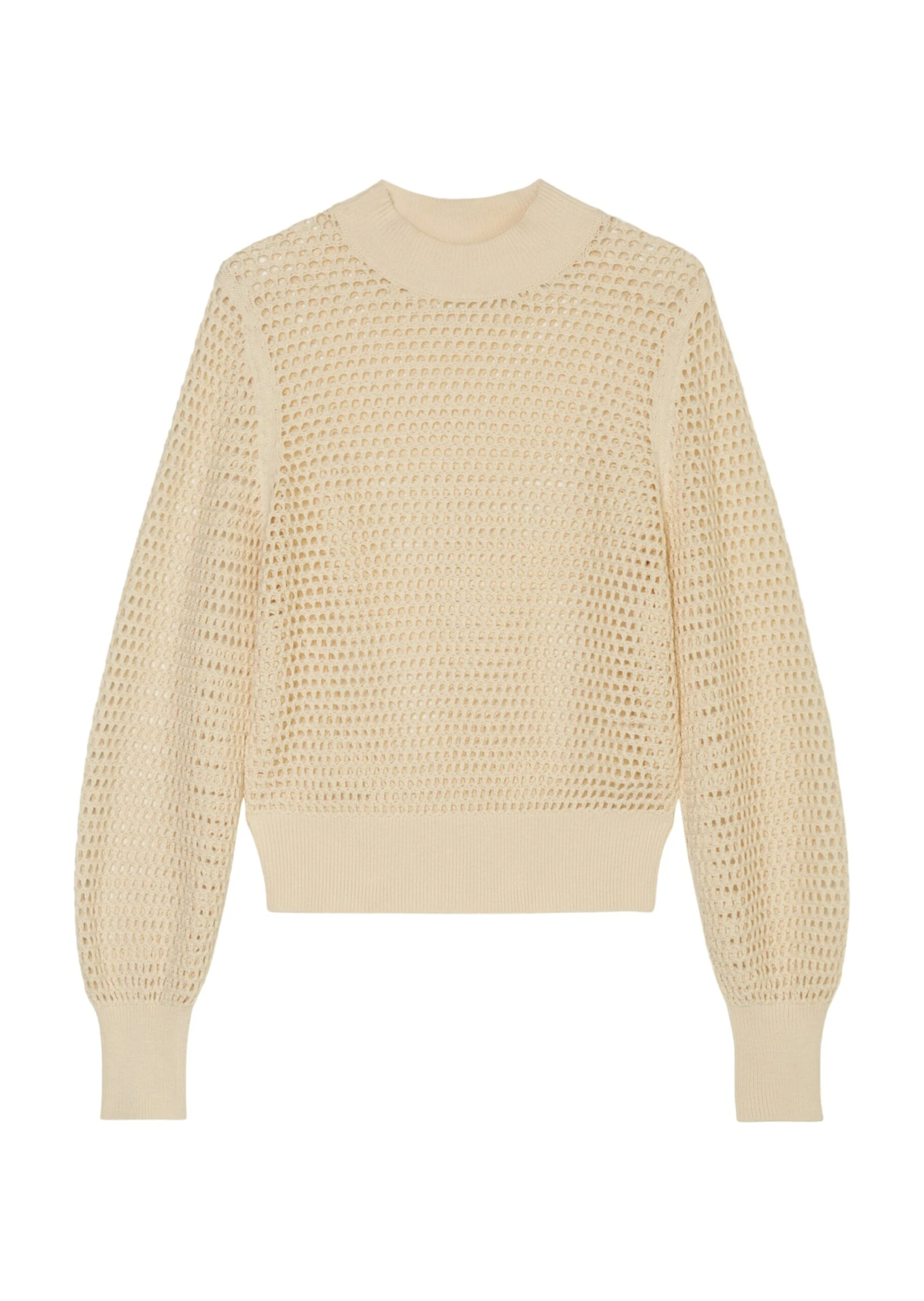 Marc O’Polo Crewneck Jumper With Openwork Pattern, Cropped Made From Pure New Wool