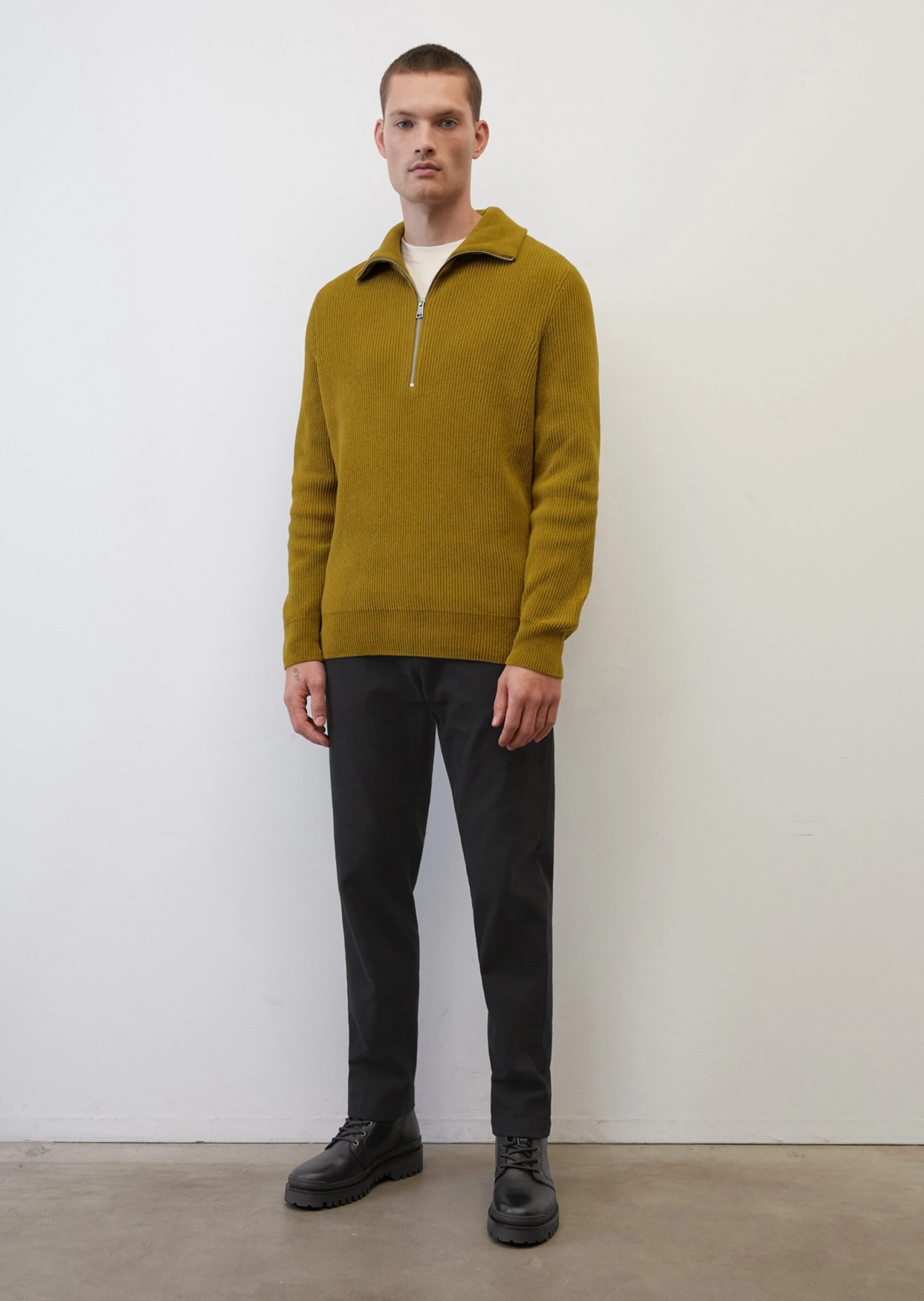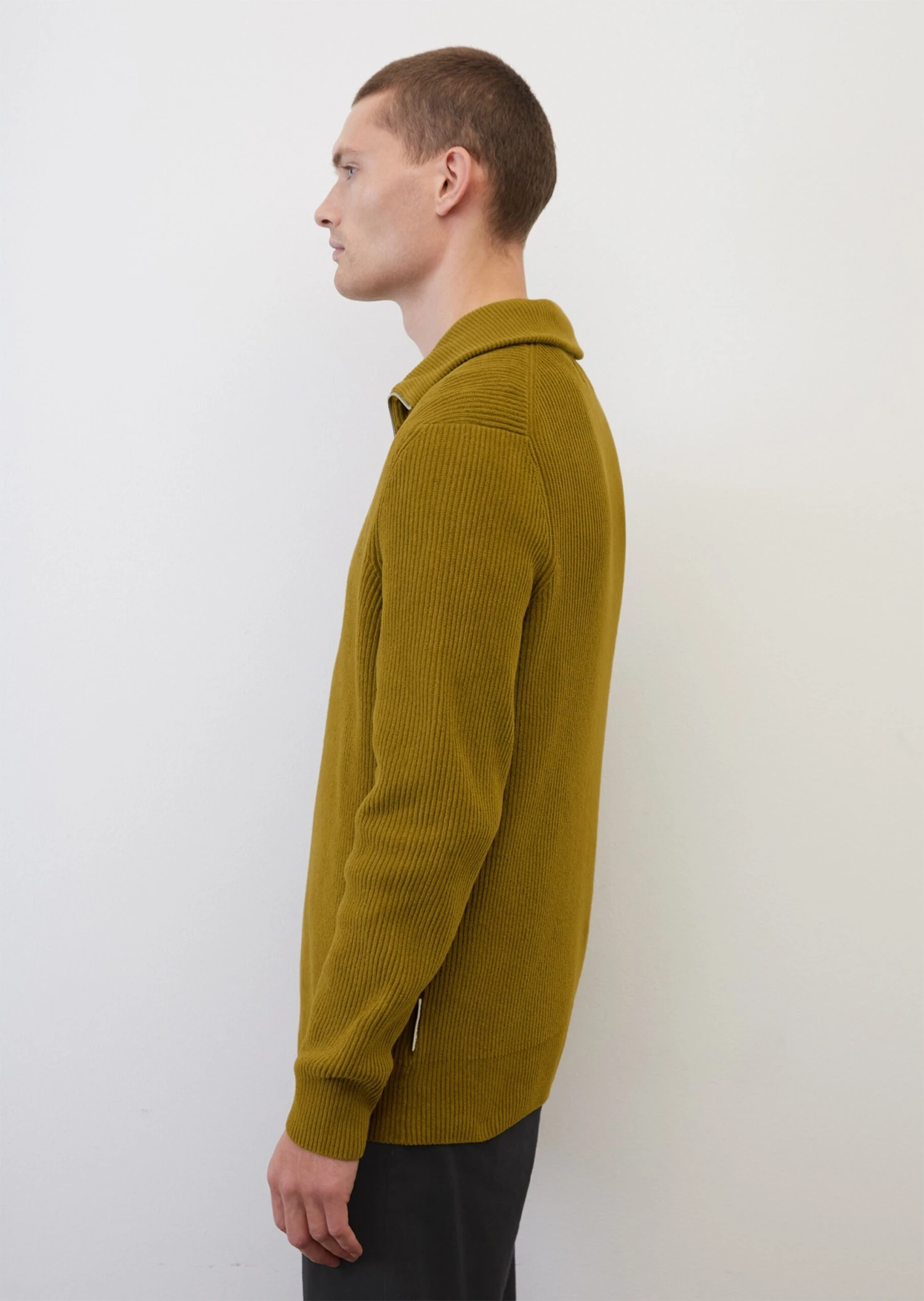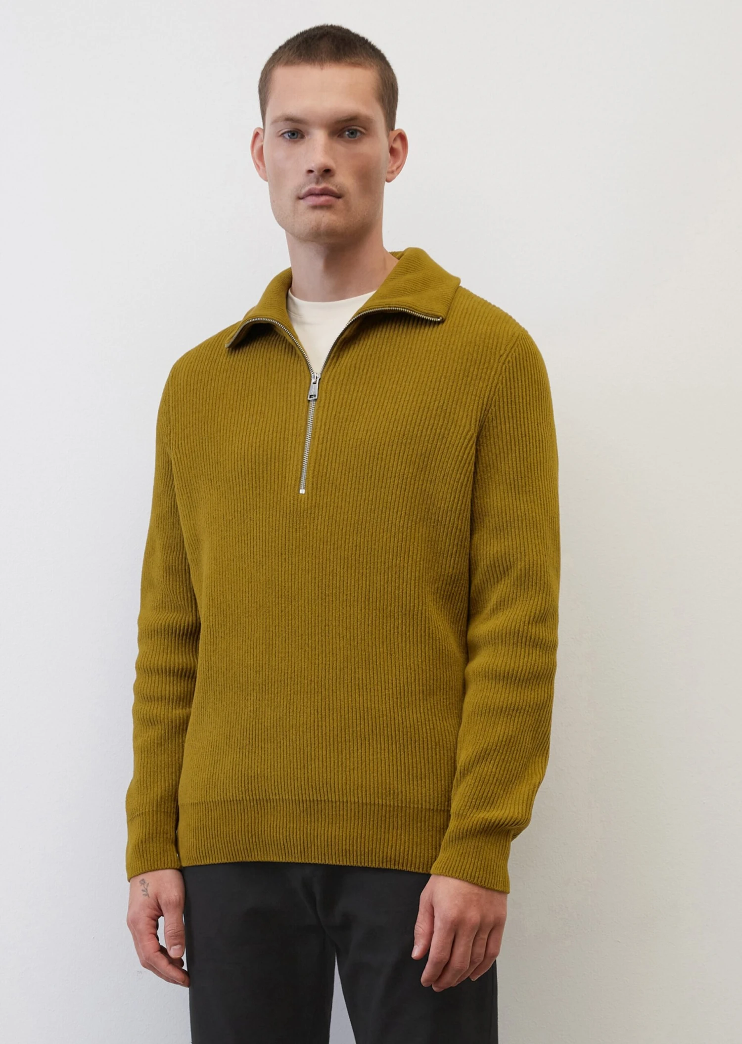 Soft & smart, our casual chenille zip-neck jumper is made of pure, GOTS-certified organic cotton finished in a soft grooved corduroy look. The design has a wide, double-layer ribbed collar, a mid-length zip fastener and compact ribbed borders on the sleeve cuffs and hem. The piece comes in a loose relaxed fit with dropped shoulders and fully fashioned details.