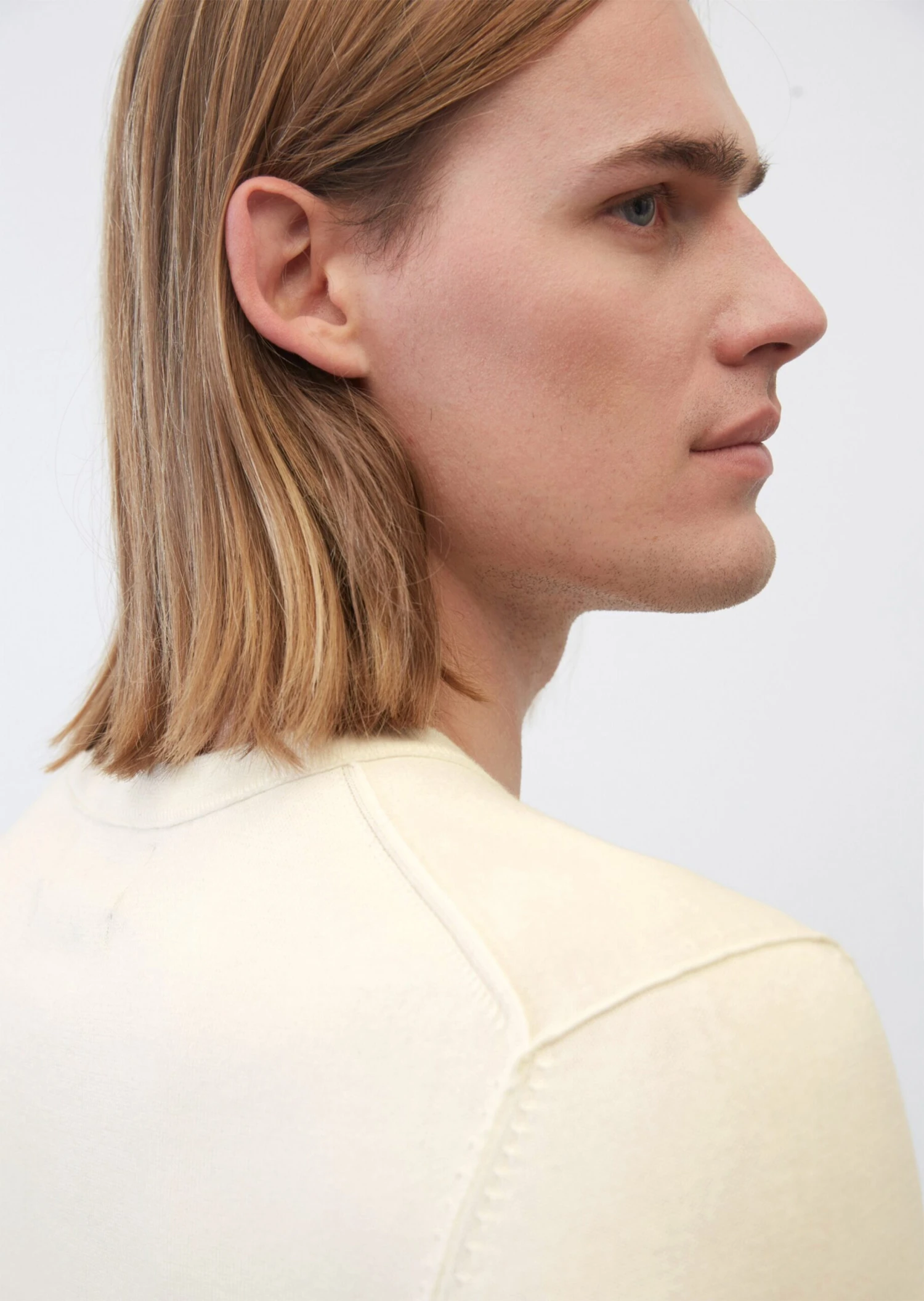 This high-quality jumper is a super soft and elegant piece made from a blend of pure organic cotton and fine silk. It comes in a classic, regular fit with a ribbed round neckline, dropped shoulders and narrow trims on the sleeves and hem. The characteristic, subtle tonal logo is embroidered on the chest. A reliable, high-quality classic.