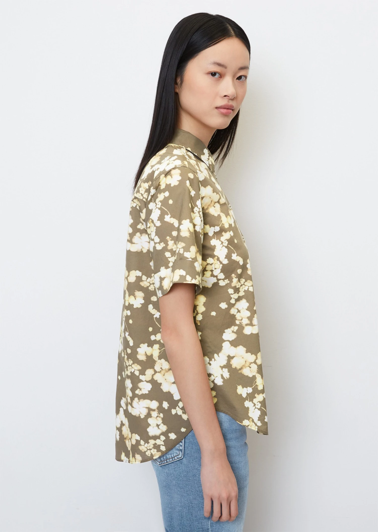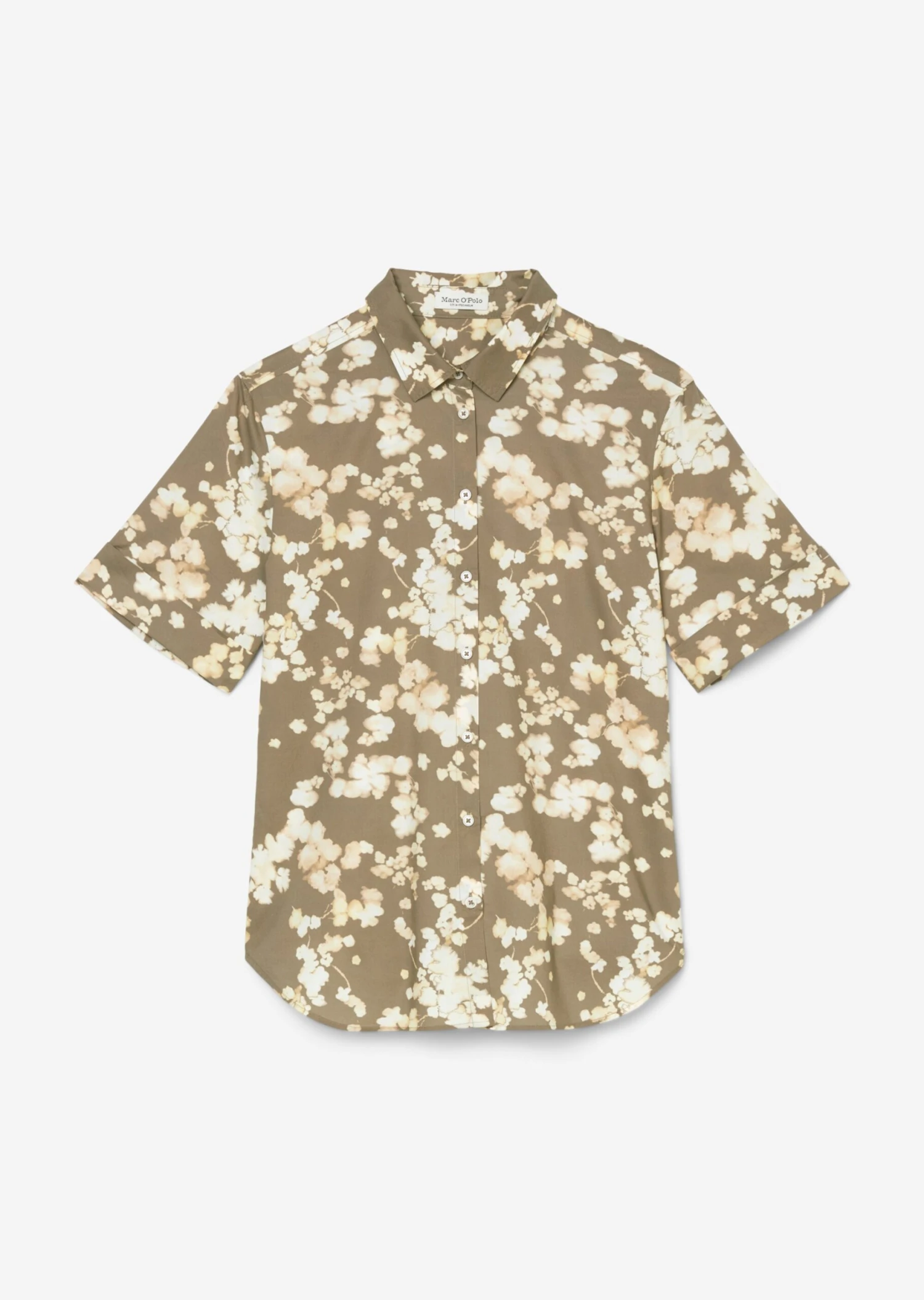 Instantly cheery with a summery vibe: Blouses with floral patterns! This feminine eye-catcher is made of pure organic cotton in paper touch poplin and has a modern Kent collar, shoulder yoke, narrow button placket, short sleeves with fixed turn-ups and a nicely rounded hemline with mock slits. The fit: regular, slightly flared at the bottom.