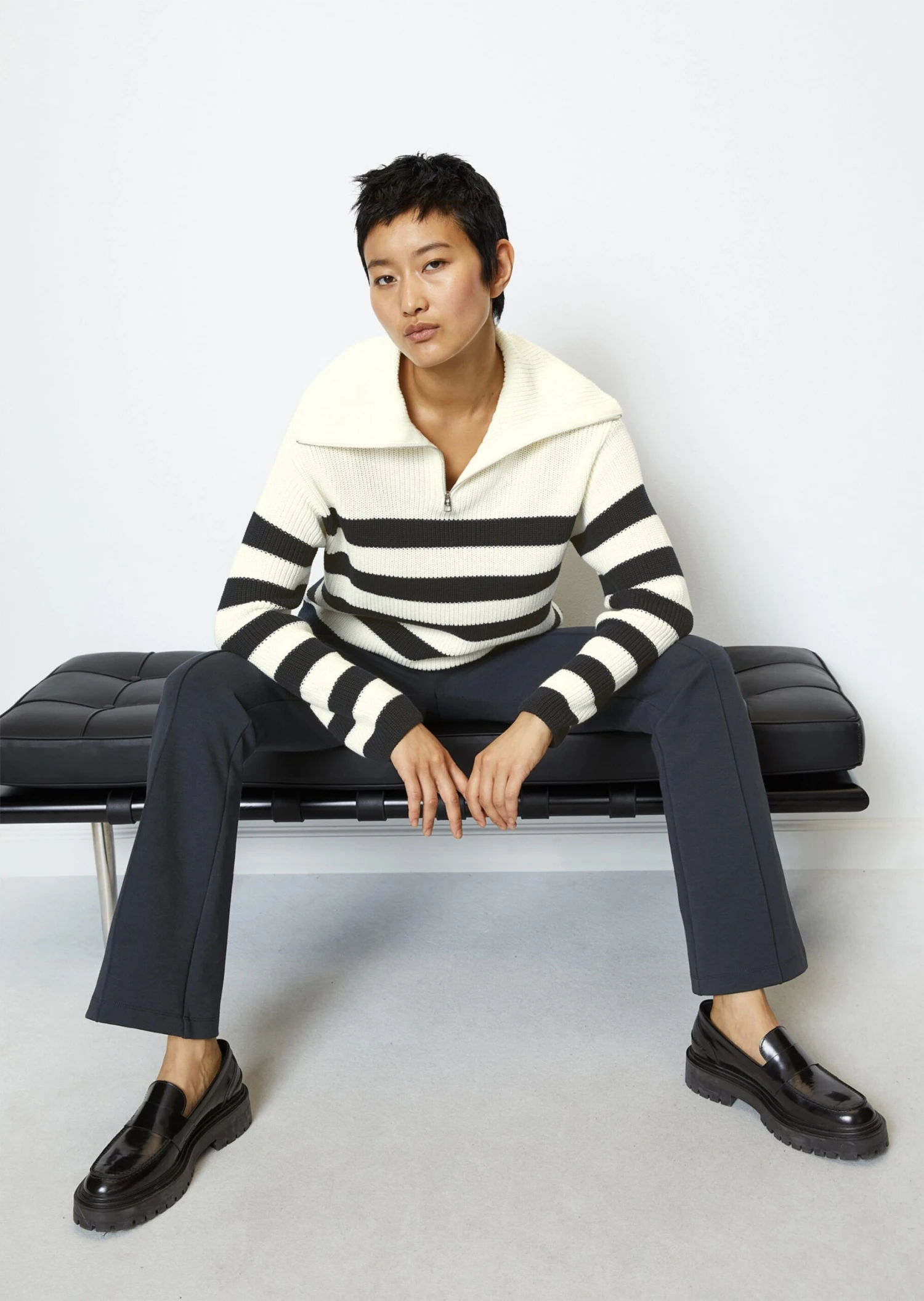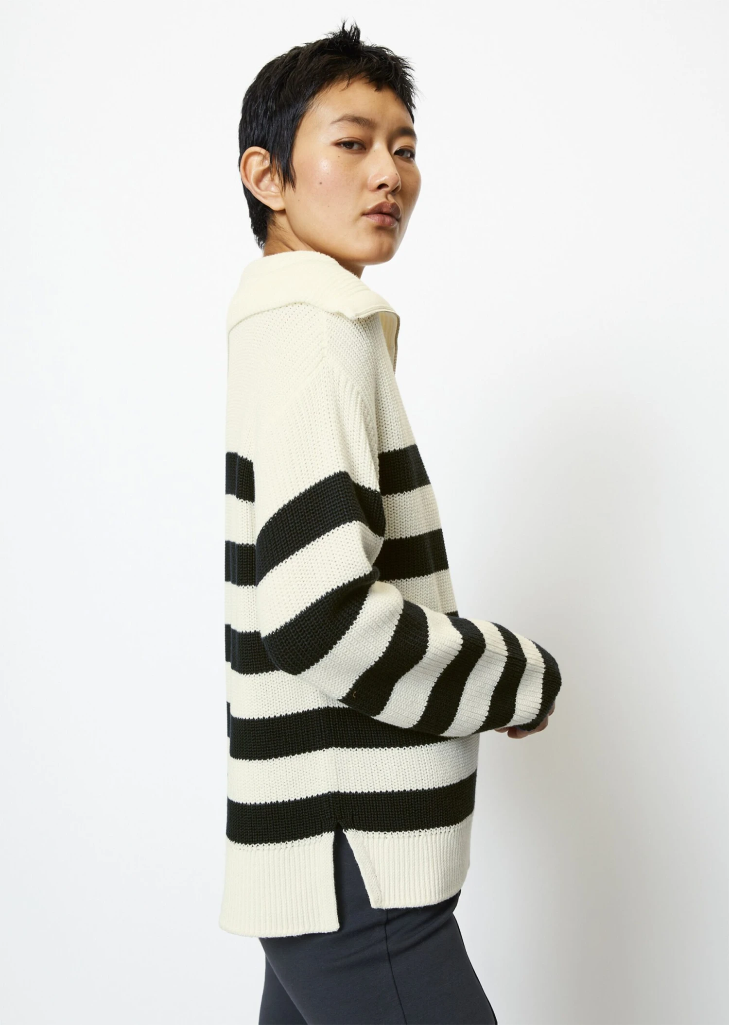 Marc O’Polo Striped Troyer Style Sweater Made Of Organic Cotton