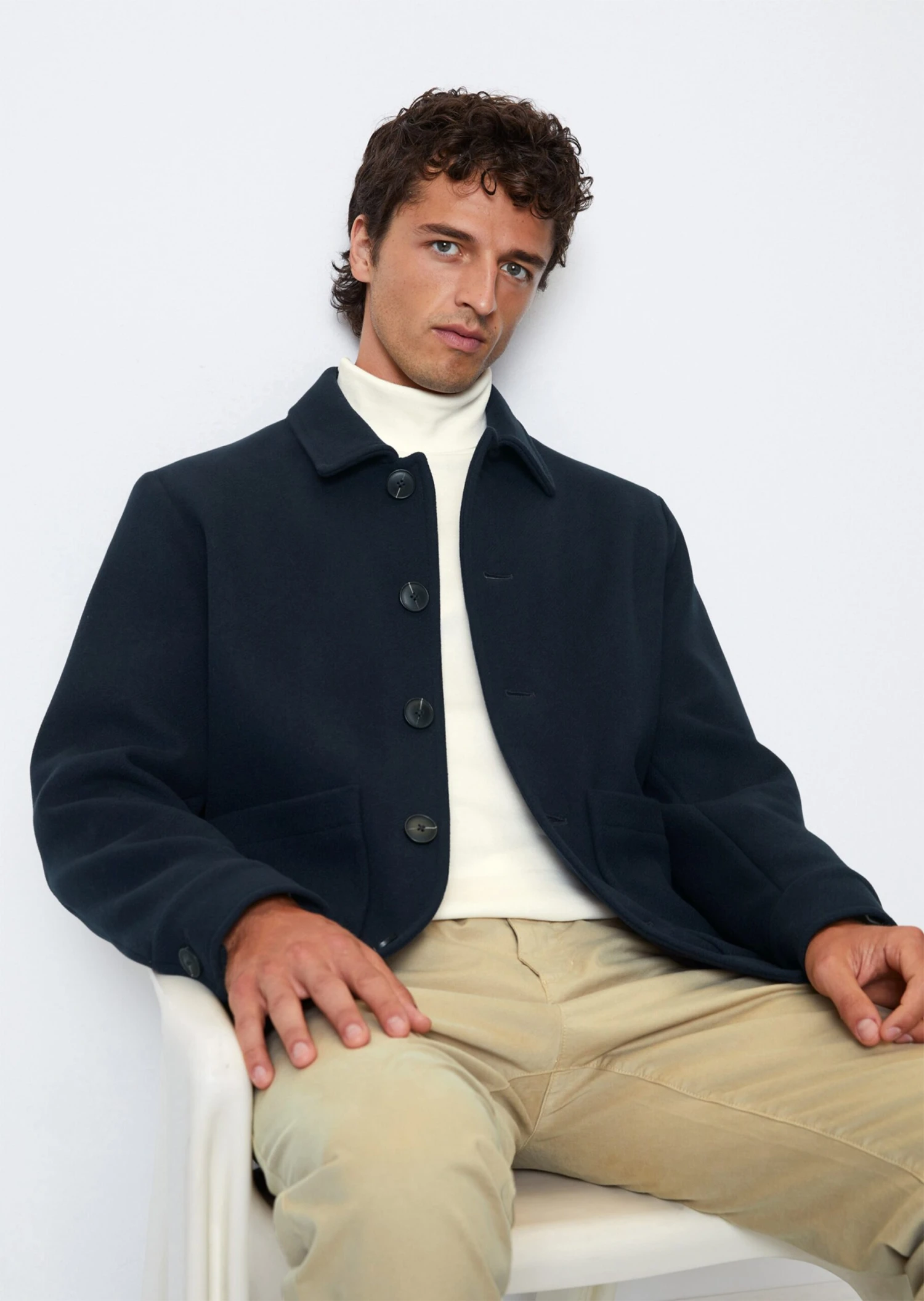 Made of Italian fine virgin wool blend by Bellandi: the high-quality outdoor jacket is perfect for colder days and offers a pleasant and breathable climate management. In masculine regular fit with timeless Kent collar and full-length button placket in horn look. Two large patch pockets on the side and wide, buttoned cuffs at the end of the sleeves complete the look. There is a practical slip pocket on the inside. Perfect for indoor and outdoor styling.